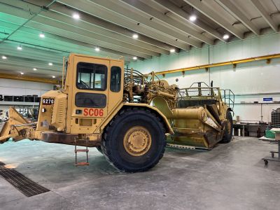 Foto van een Cat 627G bij de lokale Hutterites stond deze reus in de werkplaats